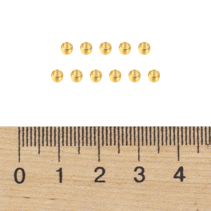 Бусины-Разделители Нержавеющая Сталь Рондель, Покрытие Золото 24К, 3х2мм, Отверстие 1.8мм, (УТ100031451)