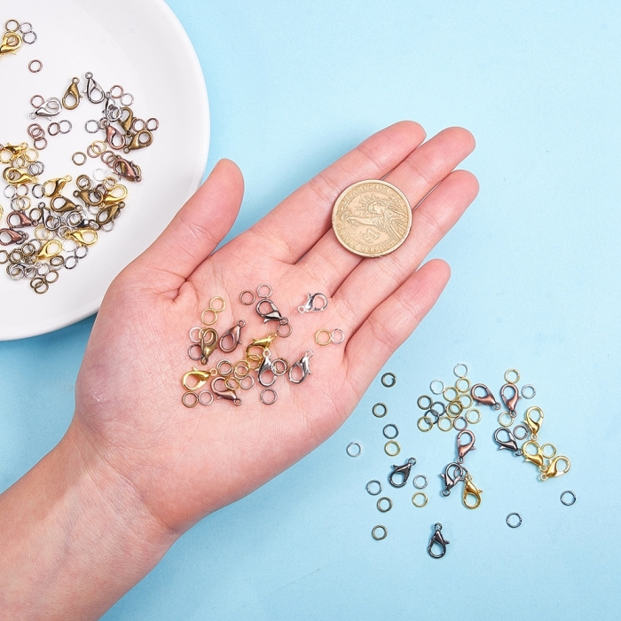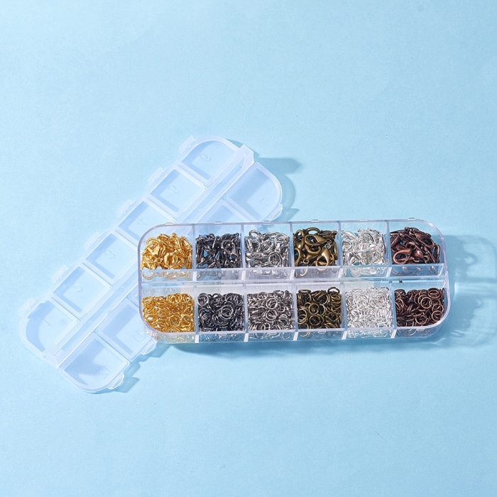 Набор Застежки и Соединительные Кольца, Карабины 12х6мм 22шт/цвет 132шт/набор, Кольца 5х0.7мм 140шт/цвет 840шт/набор, (УТ100031481)