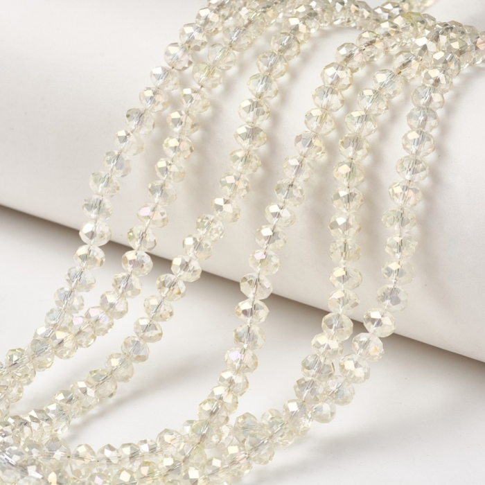 Бусины Стеклянные Рондель Гальваника, Прозрачные, Радужное Покрытие, 6х5мм, Отверстие 1мм, около 80шт/39см/нить, (УТ100031528)