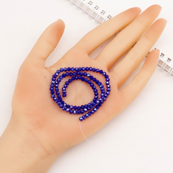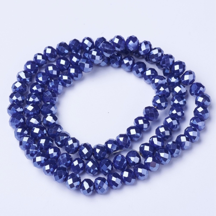 Бусины Стеклянные Гальваника Рондель Граненые, Перламутровое Покрытие, Темно-Синий, 4х3мм, Отверстие 0.4мм, около 110шт/40см/нить, (УТ100031564)