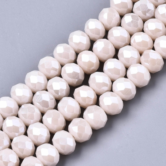 Бусины Стеклянные Гальваника Рондель Граненые, Перламутровое Покрытие, Туманная Роза, 6х5мм, Отверстие 1мм, около 80шт/38см/нить, (УТ100031577)