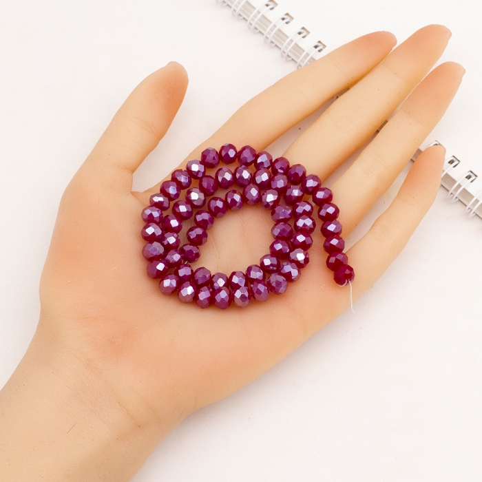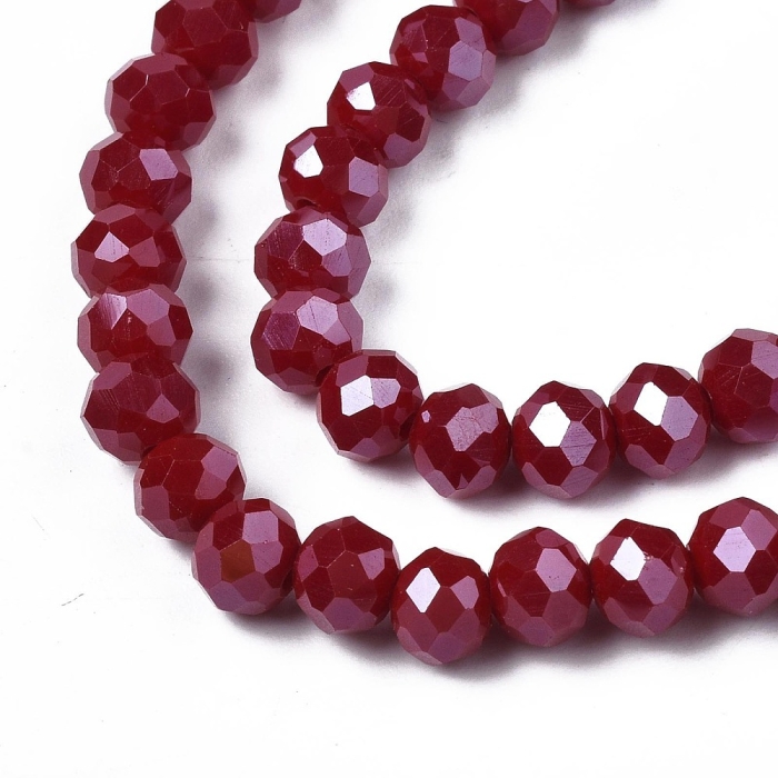 Бусины Стеклянные Гальваника Рондель Граненые, Перламутровое Покрытие, Темно-Красный, 8х6мм, Отверстие 1-1.4мм, около 60шт/38см/нить, (УТ100031578)