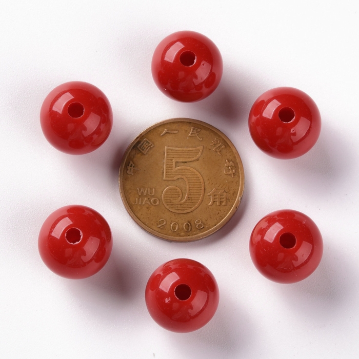 Бусины Акриловые Круглые Непрозрачные, Кирпичный, 12х11мм, Отверстие 1.8мм, около 55шт/50г, (УТ100031593)