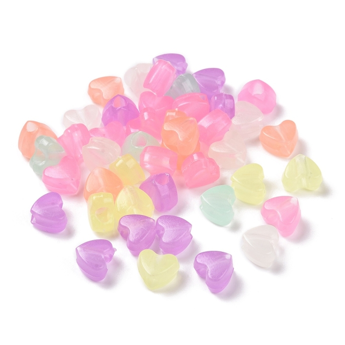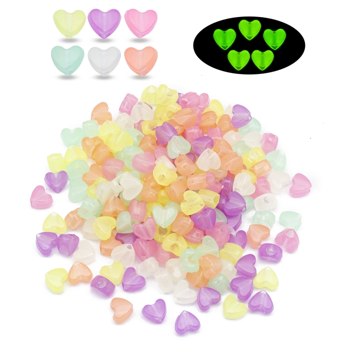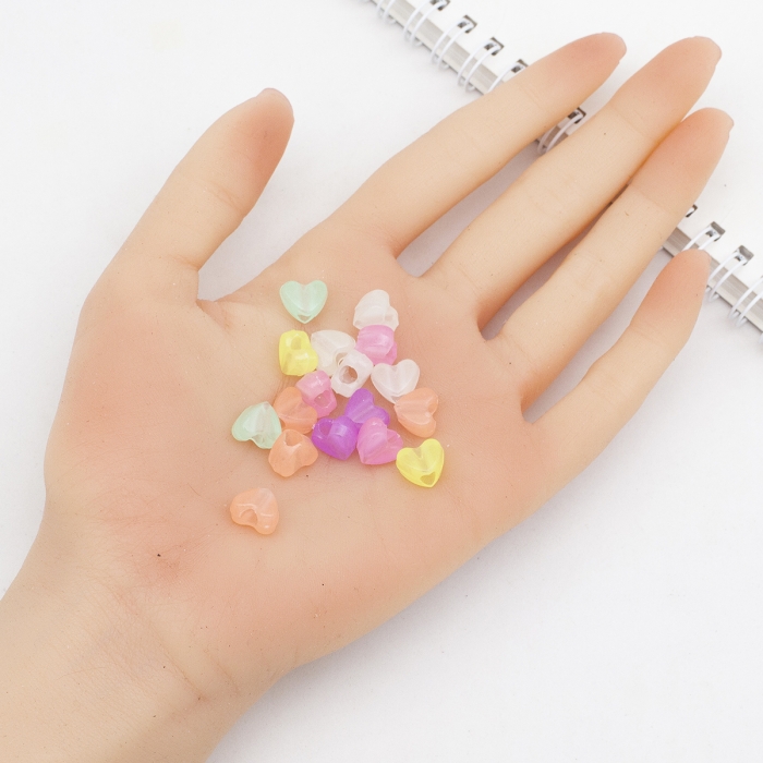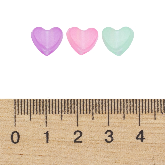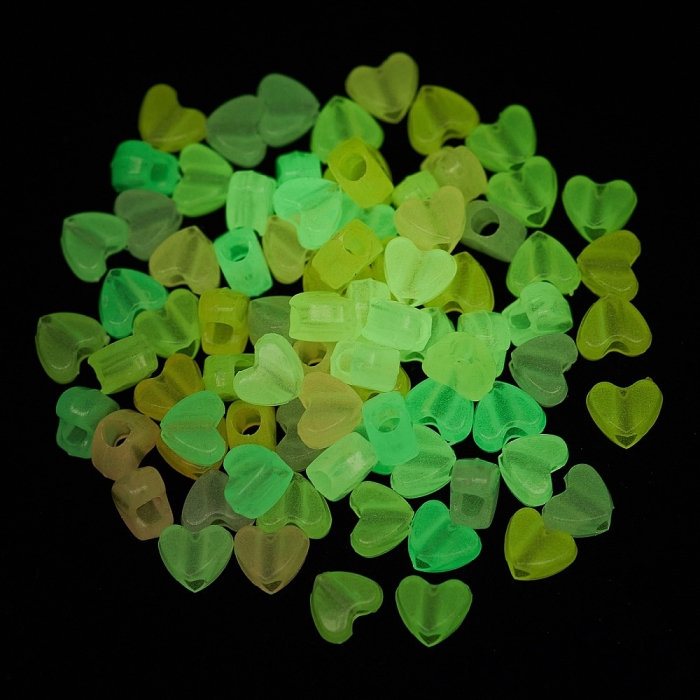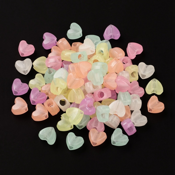 Бусины Акриловые Сердце Флуоресцентные, Неоновые, Светящиеся в темноте, Микс, 8.5х10.5х6мм, Отверстие 3.7мм, около 170шт/50г, (УТ100031614)