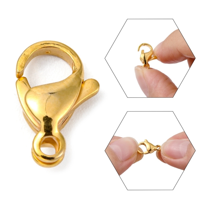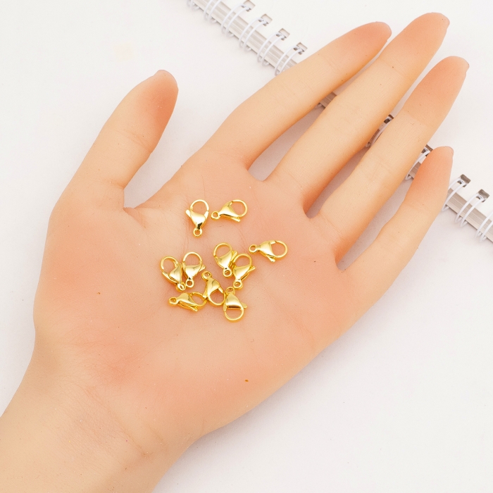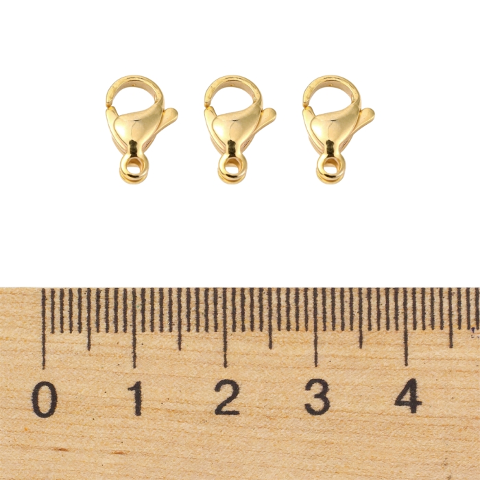 Застежка Карабин-Лобстер Полированная Нержавеющая Сталь, Позолота 24К, 13х8х4мм, Отверстие 1мм, (УТ100031641)