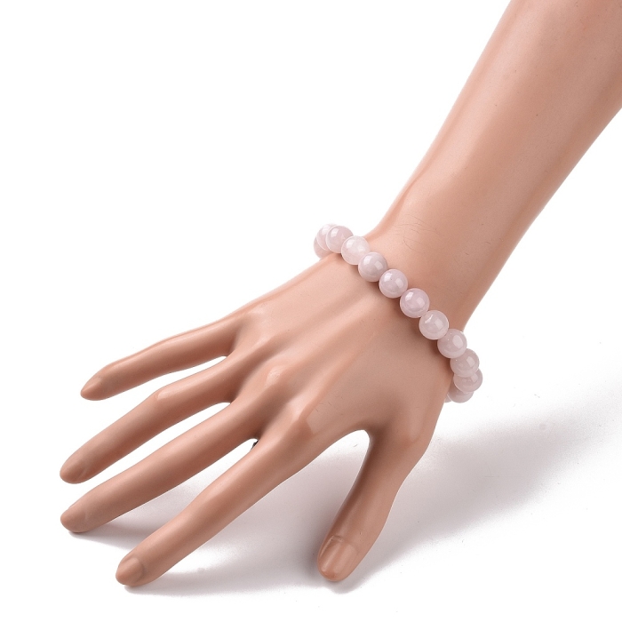 Браслет из Бусин Натурального Розового Кварца Эластичный, 5.2-5.5см, Бусина 10мм, 17-20шт/браслет, (УТ100031996)