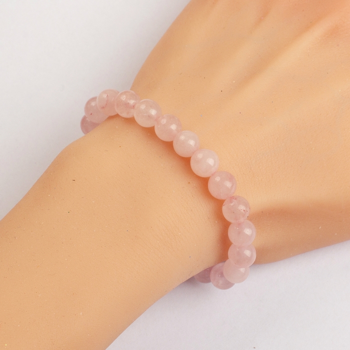 Браслет из Бусин Натурального Розового Кварца Эластичный, 5.5-6см, Бусина 8мм, 20-23шт/браслет, (УТ100031997)