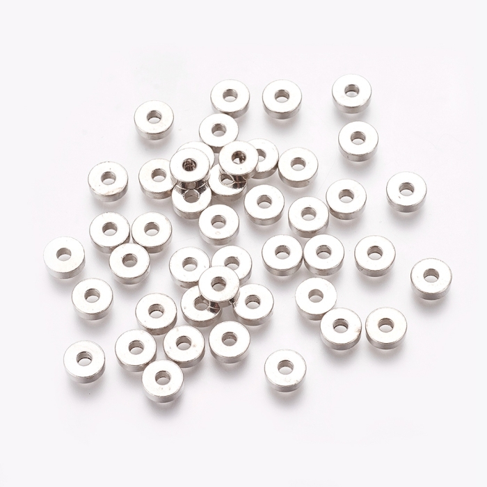 Бусины-Разделители Латунные Рондель, Платина, 6х2мм, Отверстие 2мм, (УТ100032042)