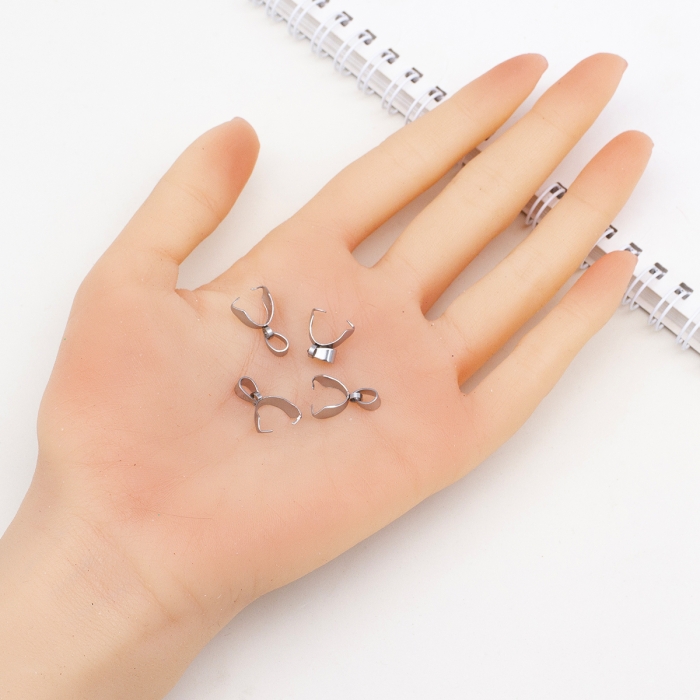 Держатели для подвесок — это функциональные элементы, созданные для крепления кулонов и подвесок к цепочкам, шнуркам или другим основам украшений. Изготовленные из нержавеющей стали, эти держатели отличаются высокой прочностью, устойчивостью к коррозии и долговечностью. Их современный и лаконичный дизайн подходит для разных стилей бижутерии. Конструкция держателей включает петлю, зажим или замок, что позволяет легко и быстро закреплять подвески, не повреждая их и сохраняя эстетический вид.