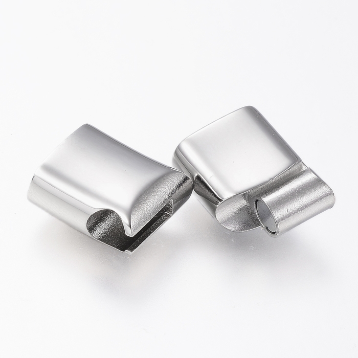 Прямоугольные магнитные застежки изготовлены из нержавеющей стали 304, известной своей высокой устойчивостью к ржавчине и износу. Специальное покрытие защищает от потускнения. Концы застежки предназначены для приклеивания шнуров или жгутов, что обеспечивает надежное соединение.