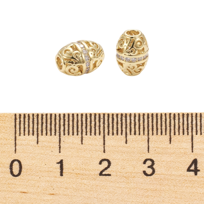Бусины в форме бочонки изготовлены из латуни и украшены микроинкрустацией прозрачных кубических циркониев, что создает роскошный блеск и изысканный вид. Долговечное покрытие защищает от потускнения и обеспечивает сохранение привлекательности даже при частом ношении.