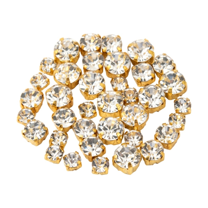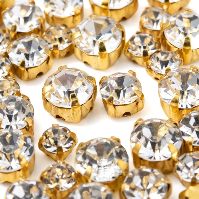 Пришивные стеклянные стразы в плоско-круглой форме с основой из латуни – это стильный и практичный элемент декора. Несмотря на название, стразы изготовлены из высококачественного стекла, которое обладает ярким блеском и прозрачностью, создавая эффект роскошного сияния. Плоская круглая форма делает их универсальным решением для украшения любых изделий. Латунная основа обеспечивает прочность и долговечность, а отверстия на оправе позволяют легко пришивать стразы к различным материалам.