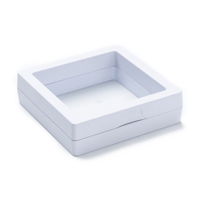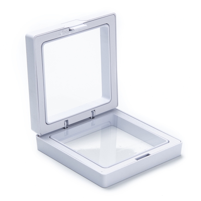 Универсальная демонстрационная подставка дисплей из тонкой прозрачной пленки (PE), натянутой внутри пластиковой квадратной рамки белого цвета. Изделие позволяет "подвесить" украшение внутри - создавая эффект левитации. Идеально подходит для презентации украшений без риска повреждения. Компактная, легкая и современная.
