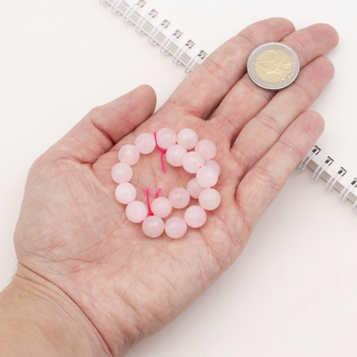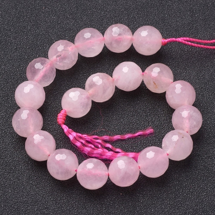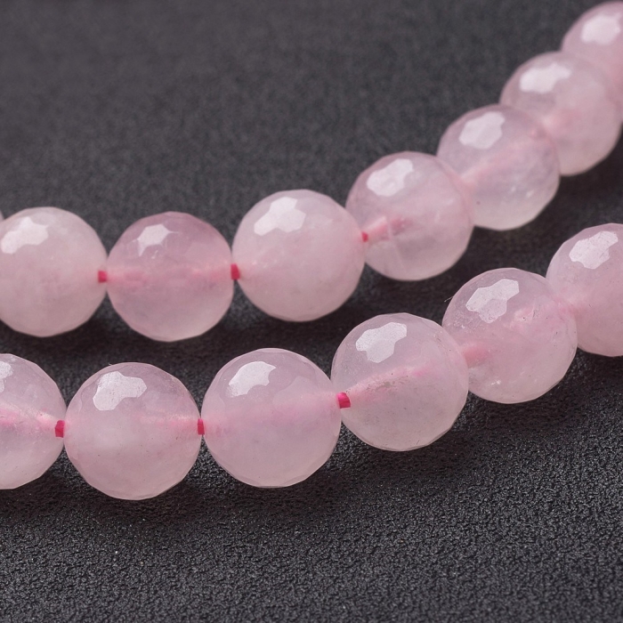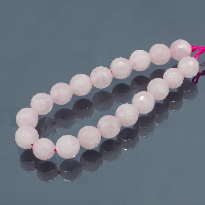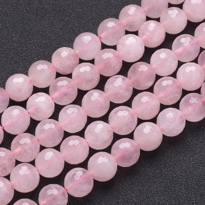 Бусины Натуральный Розовый Кварц, на нитях, Круглые, Граненые, Размер: 10мм, Отверстие 1мм, около 16шт/16см/нить, (УТ000004932)