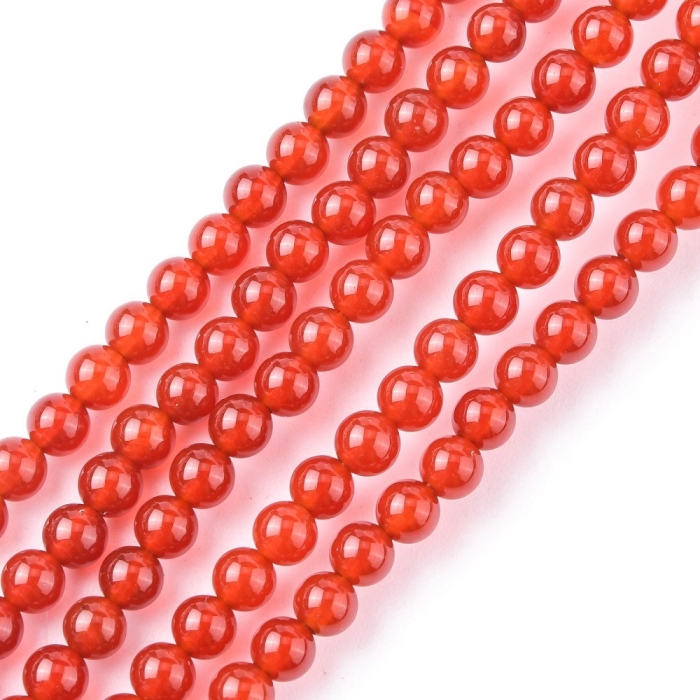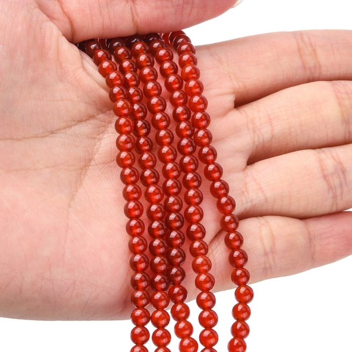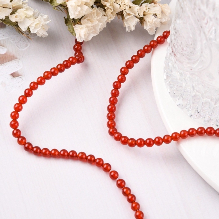 Бусины Натуральный Красный Агат / Сердолик Круглые, Класс А, 4мм, Отверстие 1мм, около 43шт/18см/нить, (УТ000005223)