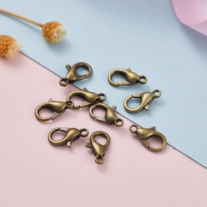Застежка Карабин-Лобстер, Металл, Цвет: Бронза, Размер: 10х6мм, Отверстие 1мм, (БА000001344)