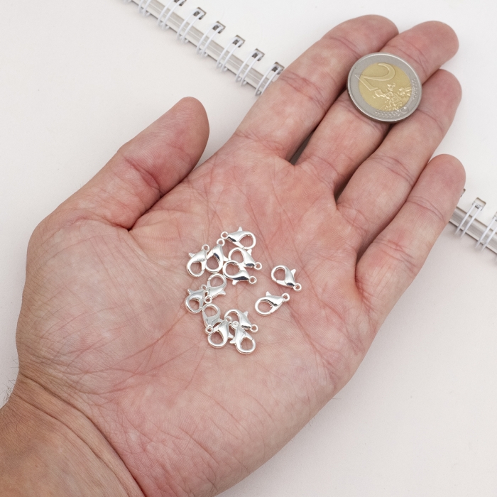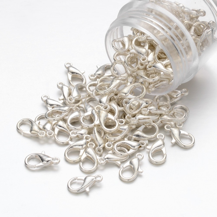 Застежка Карабин-Лобстер, Металл, Цвет: Серебро, Размер: 12х6мм, Отверстие 1.5мм, (УТ000005785)