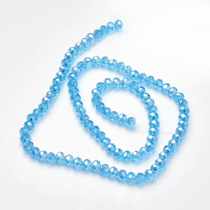 Бусины Австрийский Хрусталь Имитация, Стеклянные, Граненые Биконус, Голубой, 4х4мм, Отверстие 1мм, около 80шт/30см/нить, (УТ000007075)