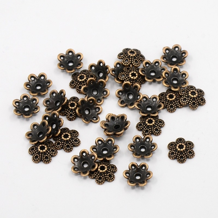 Шапочки для Бусин Цветок Сплав, Бронзовый Цвет, 9.5х10х3мм, Отверстие 1.5мм, (УТ0001806)