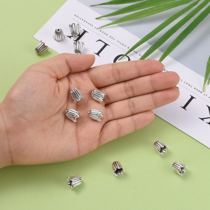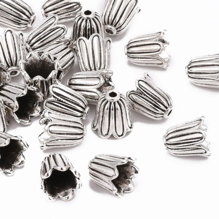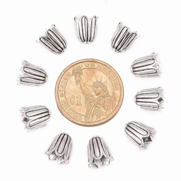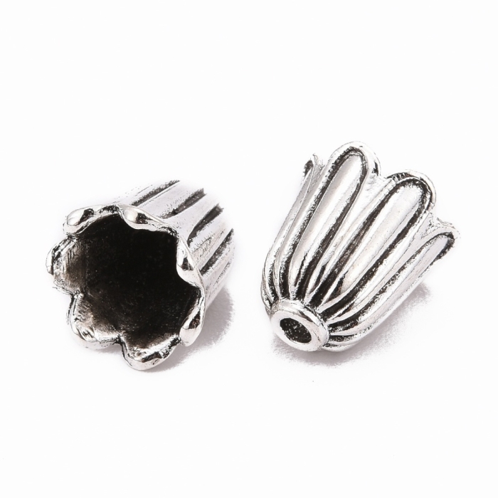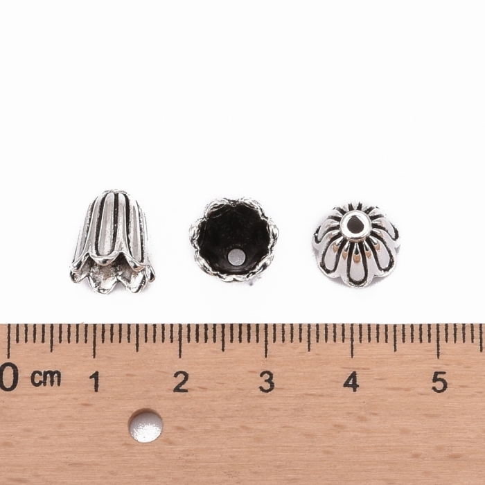 Конус Шапочки для Бусин из Сплава Цветок Тибетский Стиль, Античное Серебро, 10х10мм, Отверстие 1мм, (УТ0002720)