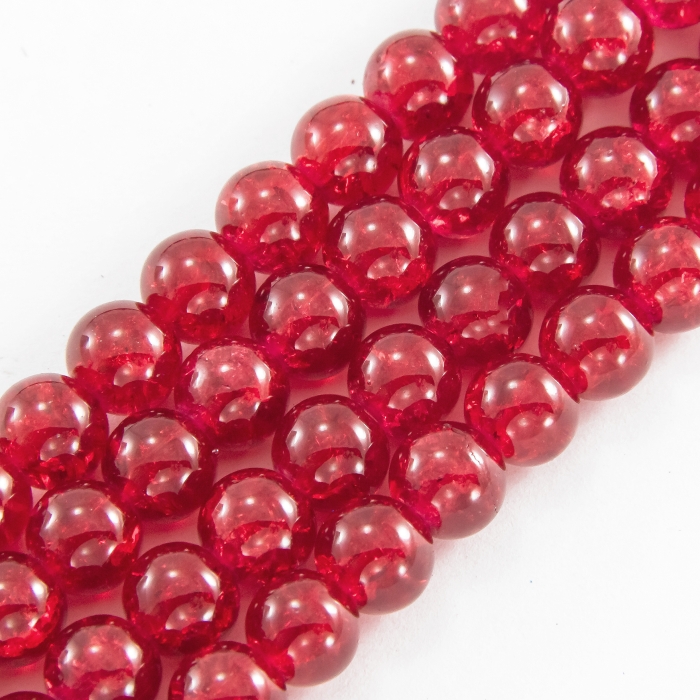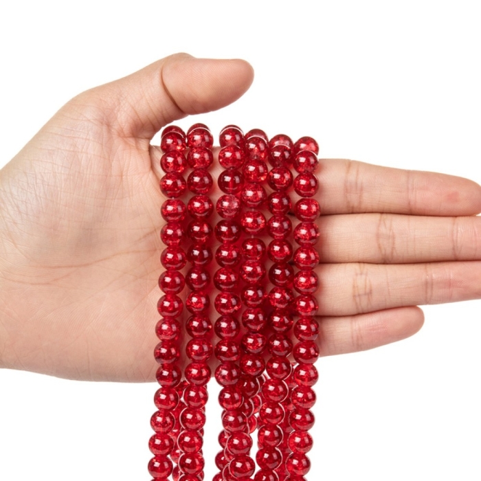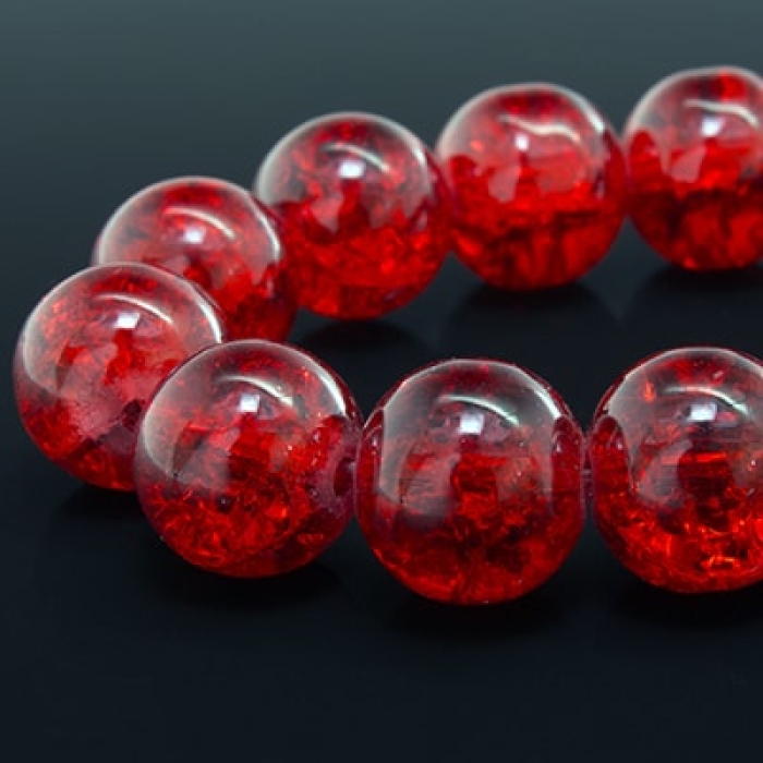 Бусины Стеклянные Кракле "Битое Стекло" Круглые, Красный, 8мм, Отверстие 1мм, около 95шт/76см/нить, (УТ0002912)