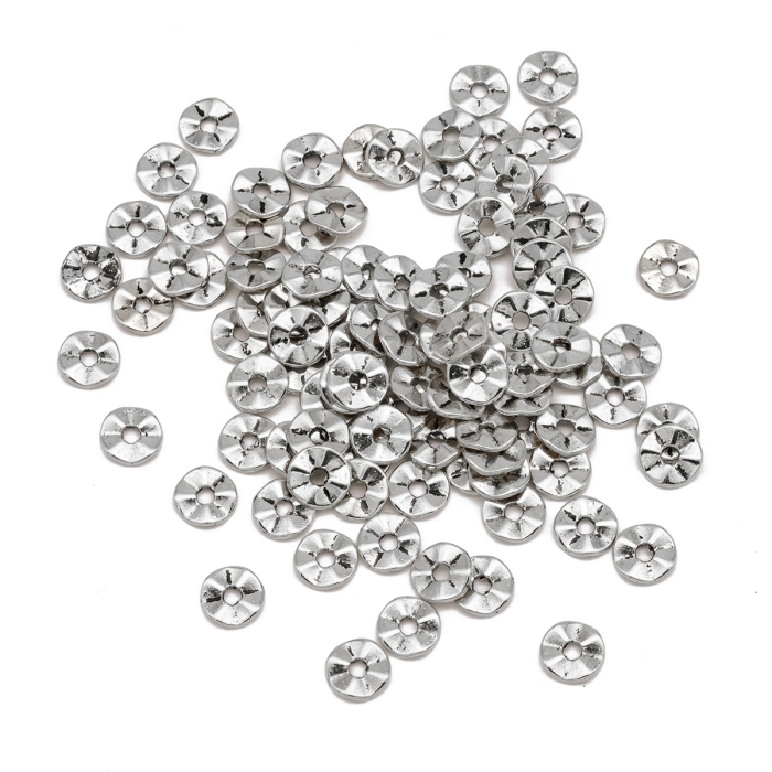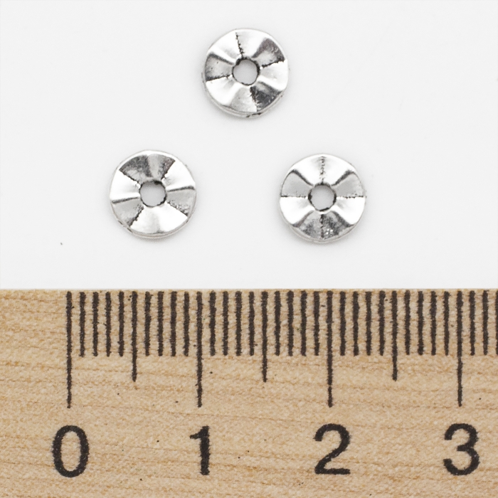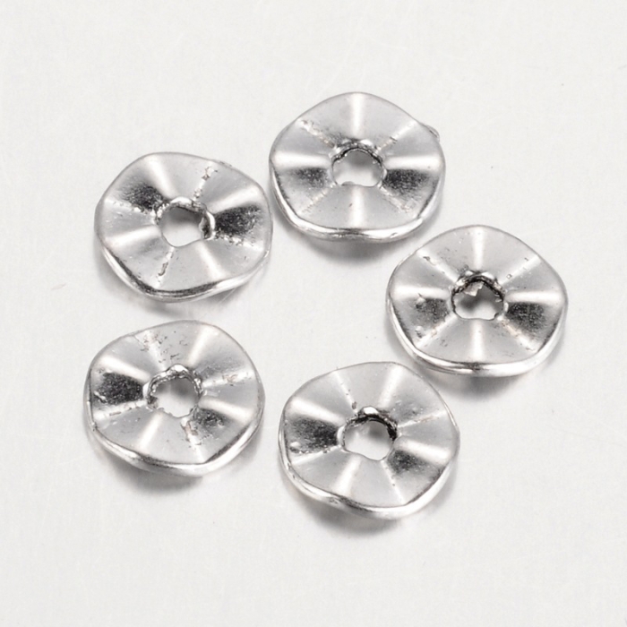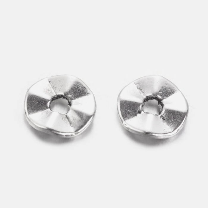 Бусины-Разделители Бижутерный Сплав Тибетский Стиль Твист Круглые Плоские, Античное Серебро, 7х1мм, Отверстие 1мм, (УТ0003272)