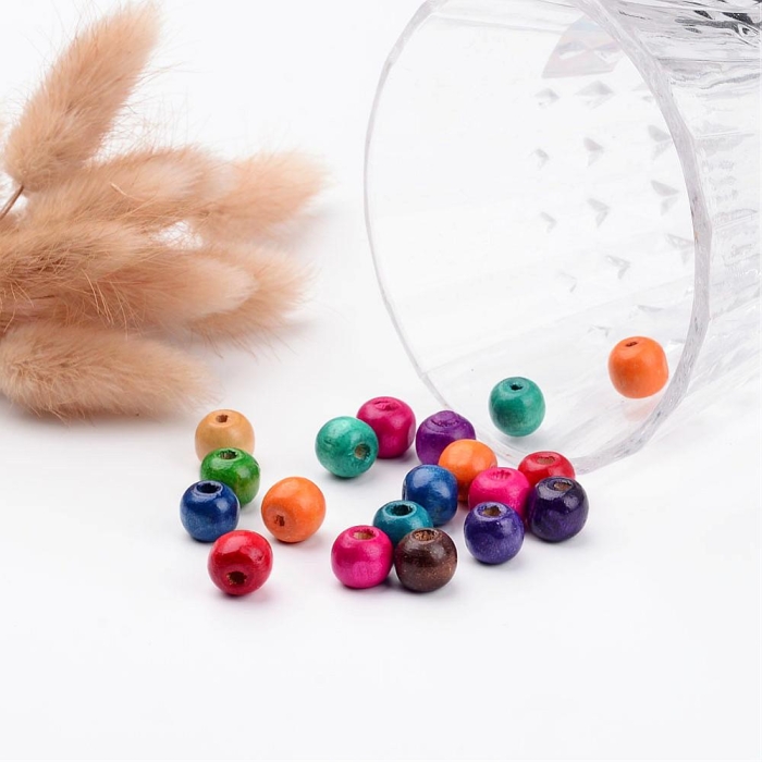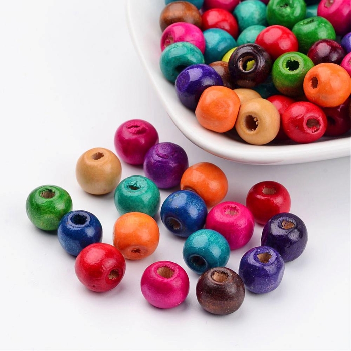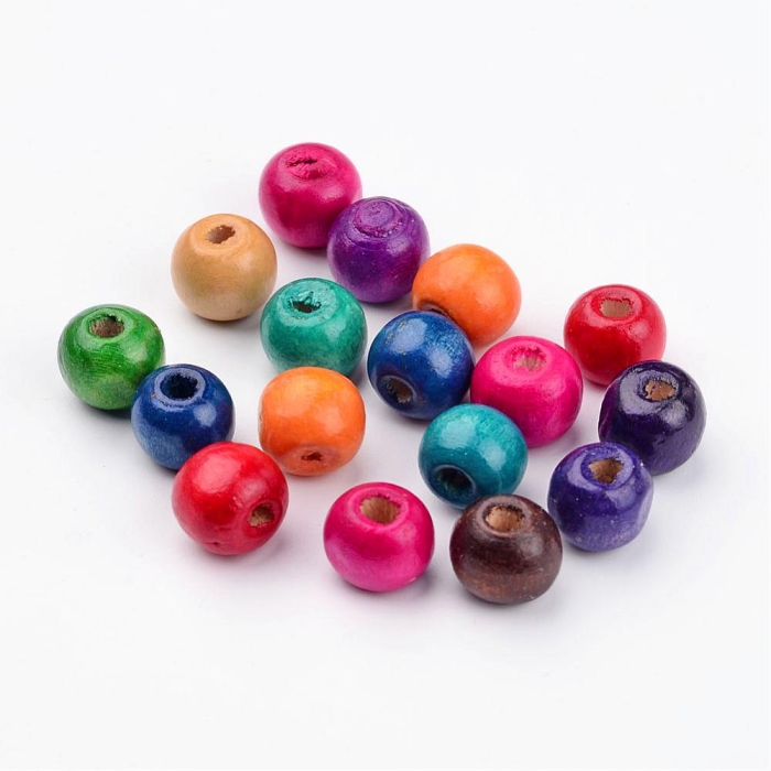 Бусины Деревянные Окрашенные, Круглые, Микс, 9х10мм, Отв-тие 3.5мм, около 140шт/50г, (УТ0003467)Упаковка: