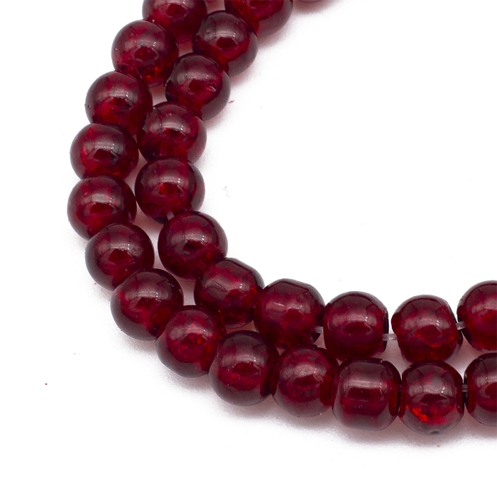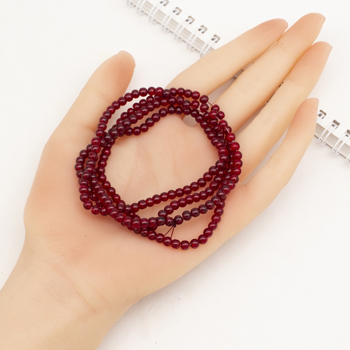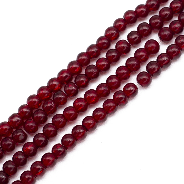 Бусины Стеклянные Кракле, "Битое Стекло" Круглые, Темно-Красный, 4мм, Отверстие 1мм, около 190шт/76см/нить, (УТ0005828)