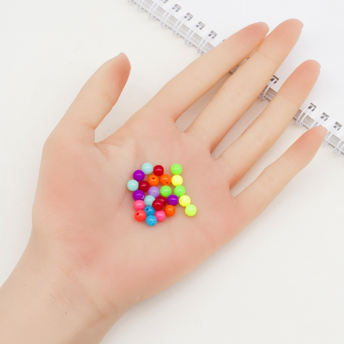 Бусины Акрил Флуоресцентные, Круглые, Микс, 6мм, Отверстие 1.5мм, около 375шт/50г, (УТ0027435)
