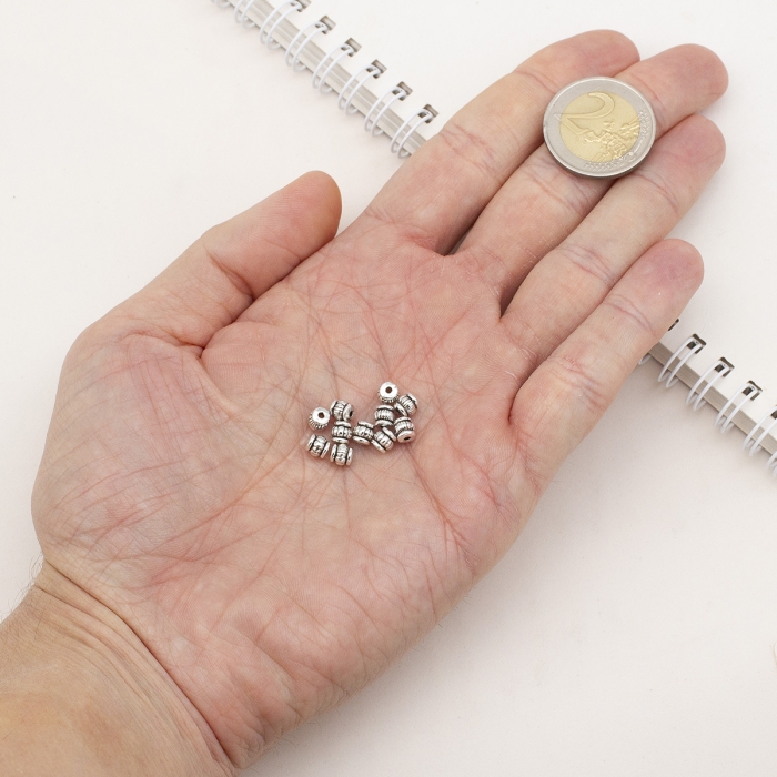 Бусины-Разделители Бижутерный Сплав, Бочка, Цвет: Античное Серебро, Размер: 5х5х5мм, Отверстие 1.5мм, (УТ0027640)