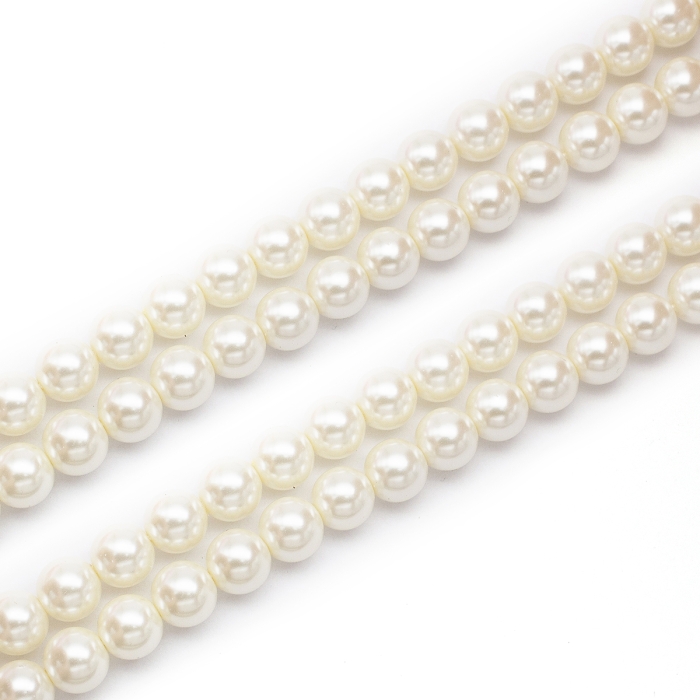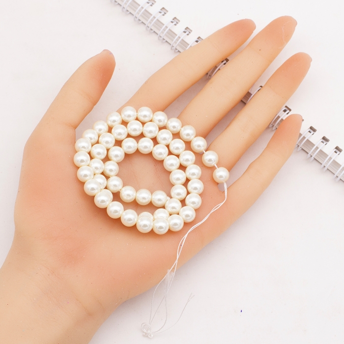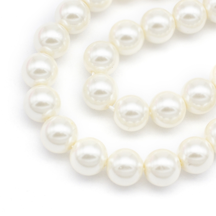 Жемчуг Бусины Круглые Стеклянные Глянцевые, Слоновая Кость, 8мм, Отверстие 1мм, около 50шт/40см/нить, (УТ0027890)