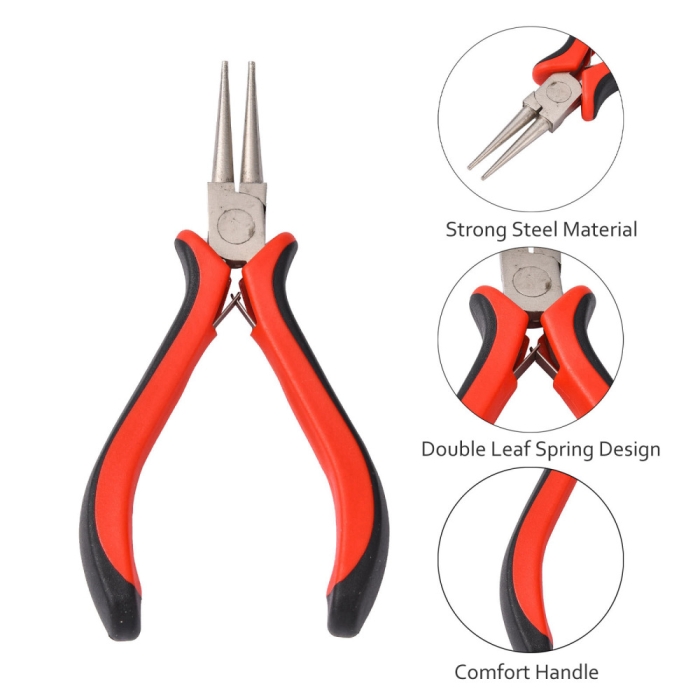 Круглогубцы Ферроникелевые Нержавеющие, Инструмент для Рукоделия и Бижутерии Цвет металла: Платина Цвет ручек: Красный