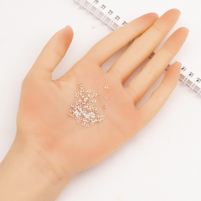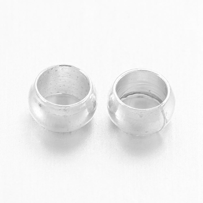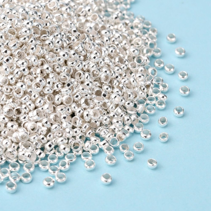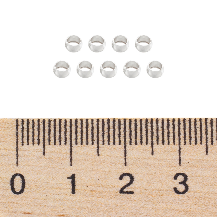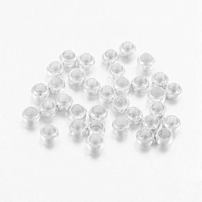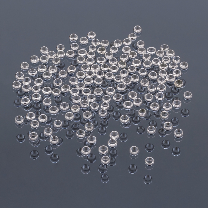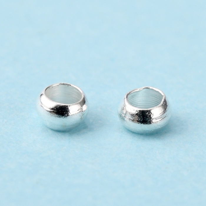 Бусины Зажимные Латунь Стопперы, Кримпы, Рондель, Серебро, 2x3мм, Отверстие 2мм, около 140шт/5г, (УТ0027864)
