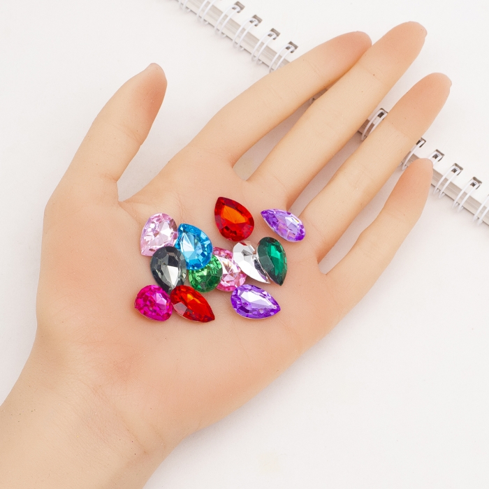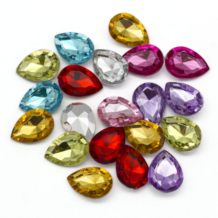 Акриловые Стразы - Кабошоны Граненые Капля, Риволи, Микс, 18х13х5мм, (УТ0029047)