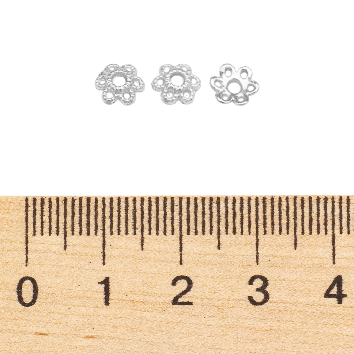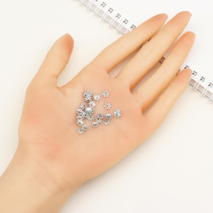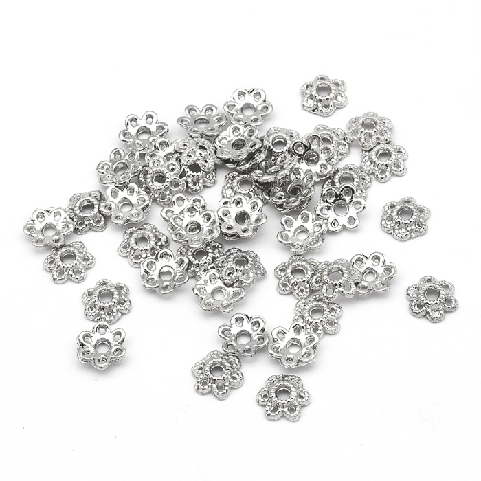 Шапочки для Бусин 6 лепестков, Цветок, Металл, Тибетский Стиль, Цвет: Платина, Размер: 6х1.5мм, Отверстие 2мм, (УТ0029209)