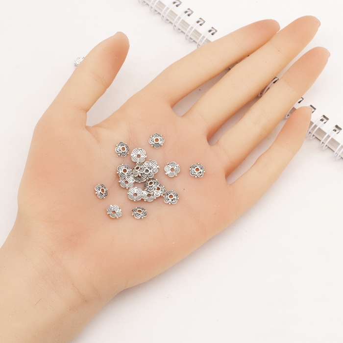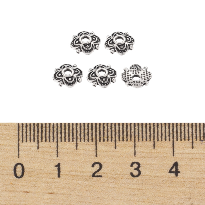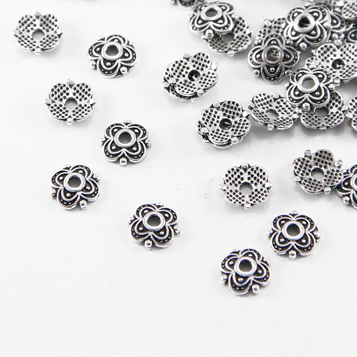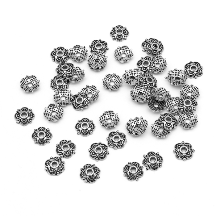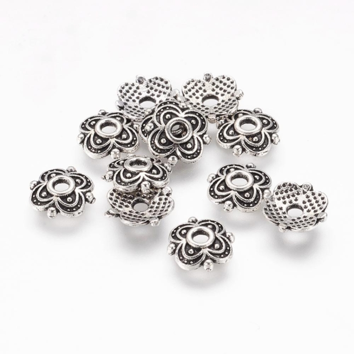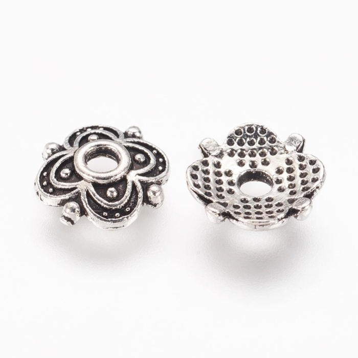 Шапочки для Бусин 4 лепестка, Цветок, Металл, Тибетский Стиль, Цвет: Античное Серебро, Размер: 8х8х2мм, Отверстие 2мм, (УТ0029213)