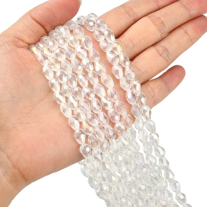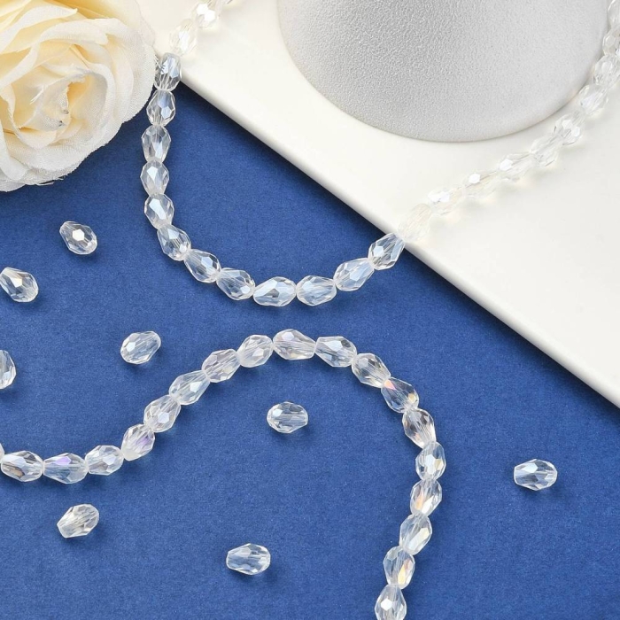 Бусины Австрийский Хрусталь, Имитация, Стекло Граненые, Прозрачные, Рондель, Бесцветный, 8х6мм, Отв-тие: 1мм, около 72шт/42см/нить (УТ000003820)