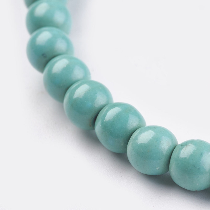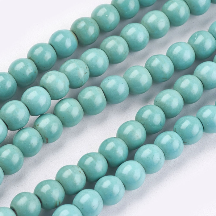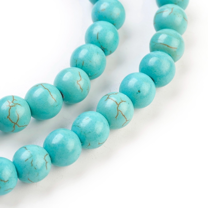 Бусины Синтетическая Бирюза Круглые, Окрашенные, на Нитях Цвет: Морская Волна