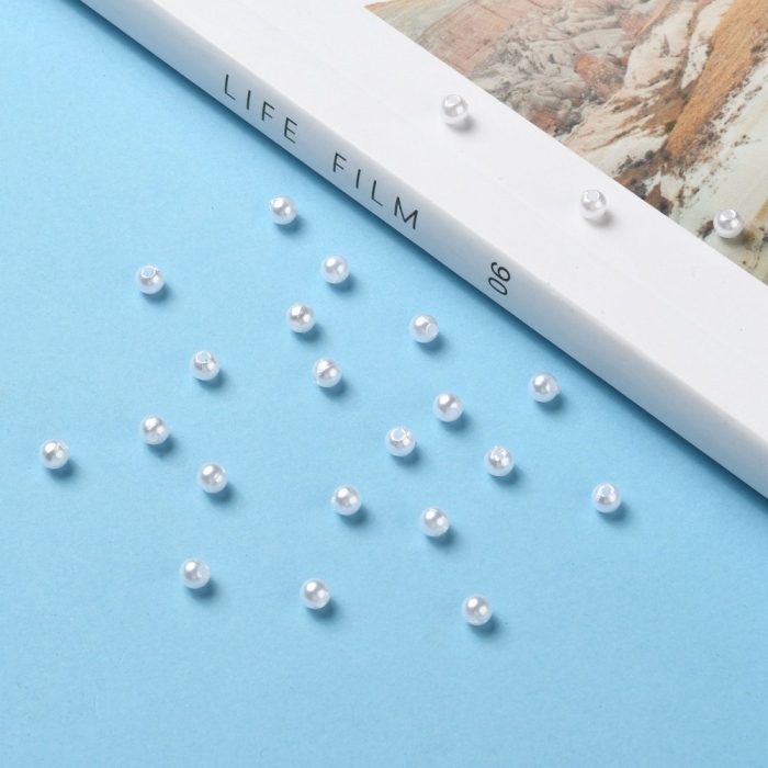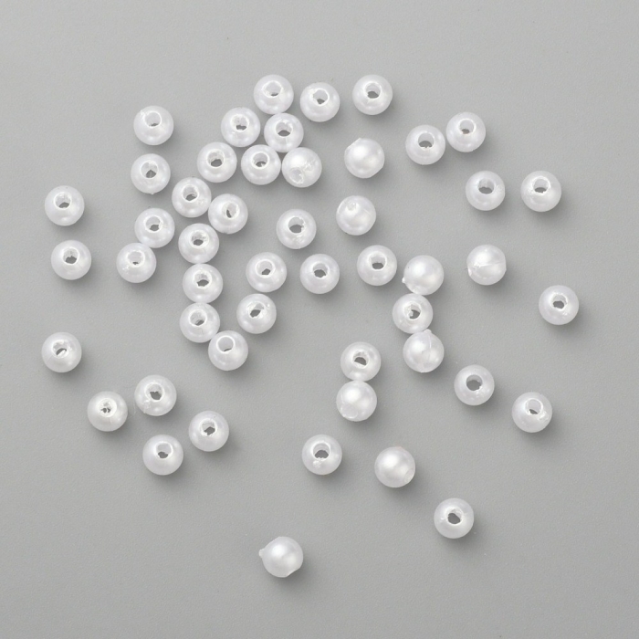 Жемчуг Бусины Акриловые Глянцевые Круглые, Белый, 4мм, Отверстие 1мм, около 850шт/25г, (УТ0030268)Упаковка: