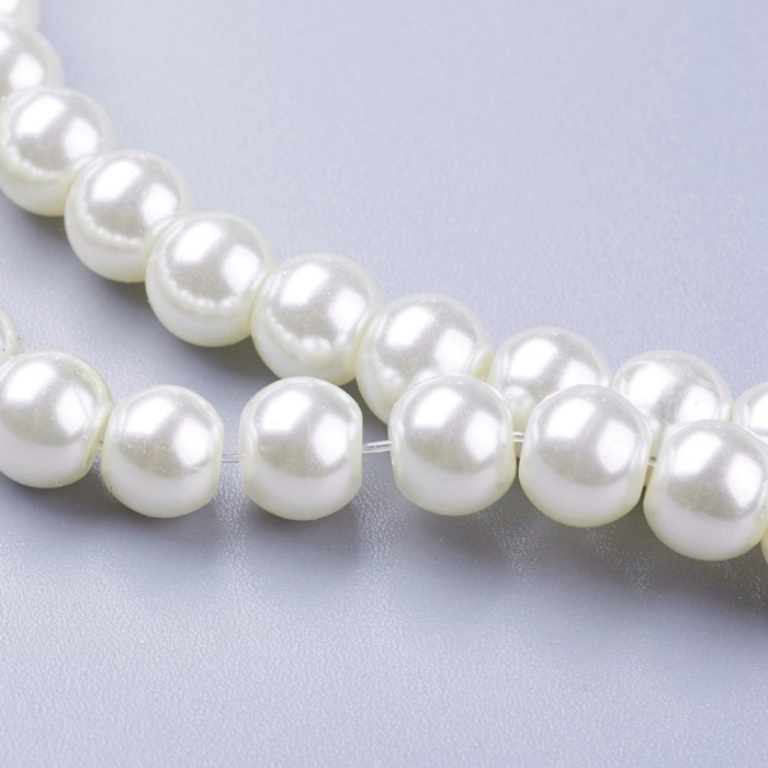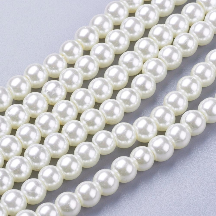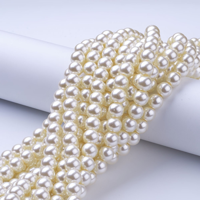 Жемчуг Бусины Стеклянные Глянцевые Круглые, Слоновая Кость, 10мм, Отверстие 1мм, около 75шт/75см/нить, (УТ100007115)