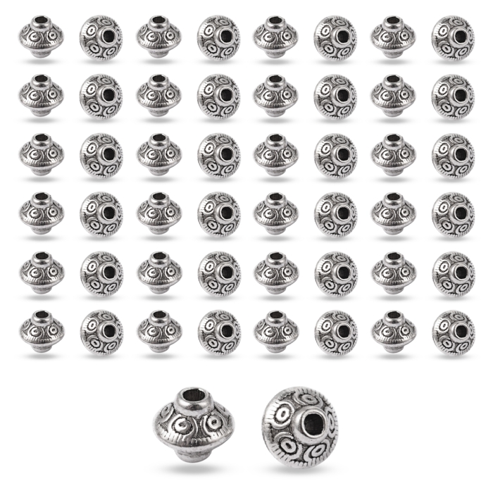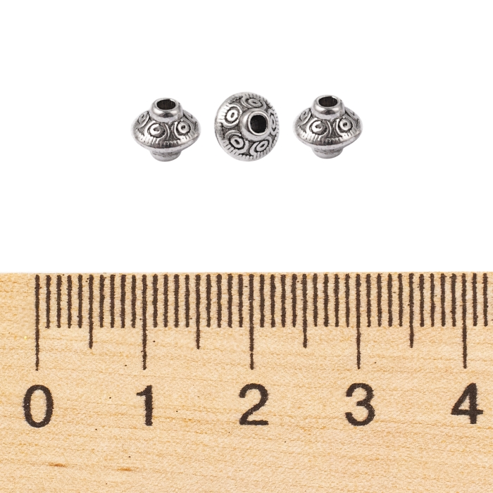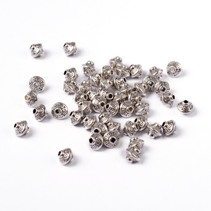 Бусины-Разделители Бижутерный Сплав, Биконус, Цвет: Античное Серебро, Размер: 5.4х6.3мм, Отверстие 1мм, (УТ100006796)