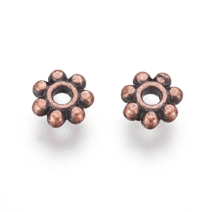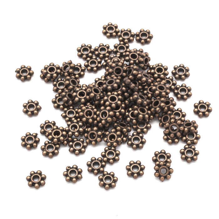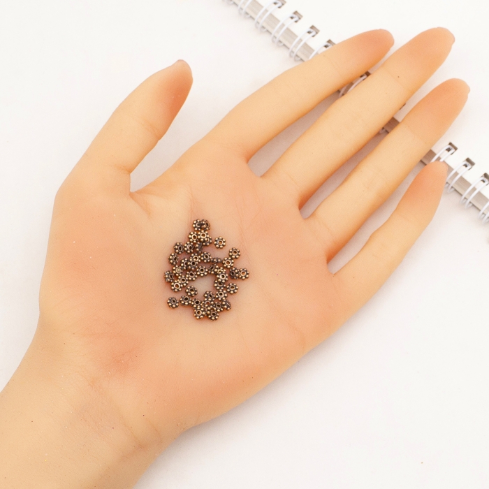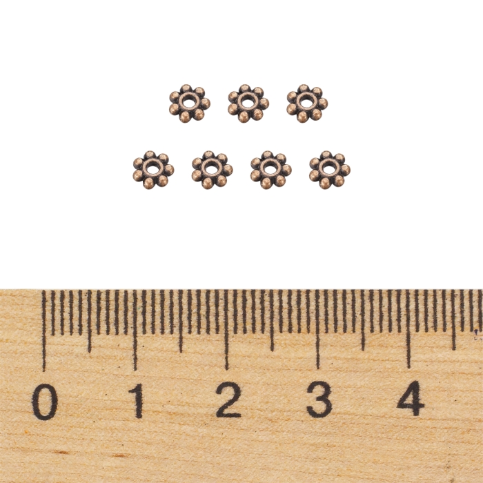 Бусины-разделители в форме цветка – это декоративный элемент, который добавляет изысканность и стиль в любые украшения. Их изящный дизайн в виде цветка помогает подчеркнуть красоту соседних бусин и создать гармоничный вид изделия. Материал из бижутерного сплава обеспечивает прочность и лёгкость, а также позволяет использовать бусины в различных видах рукоделия.