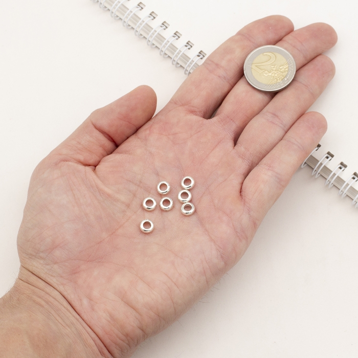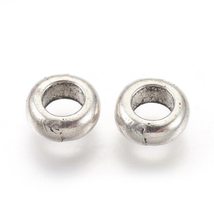 Бусины-Разделители, Бижутерный Сплав, Круглые Плоские, Цвет: Античное Серебро, Размер: 7х3мм, Отверстие 4мм, (УТ100008273)