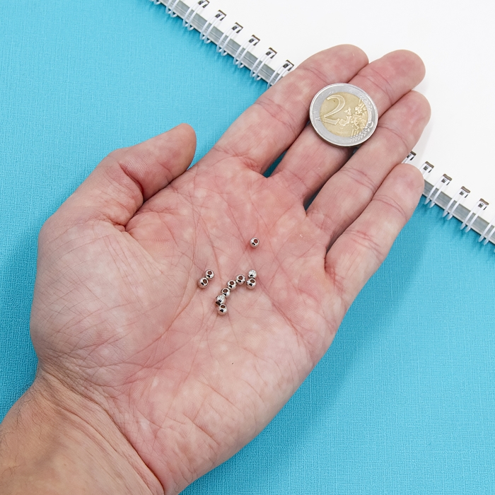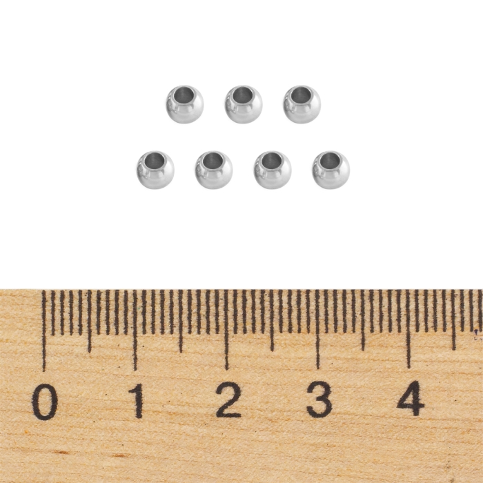 Бусины, Эко Латунь, Круглые, Цвет: Платина, Размер: 4мм, Отверстие 2мм, (УТ100007532)