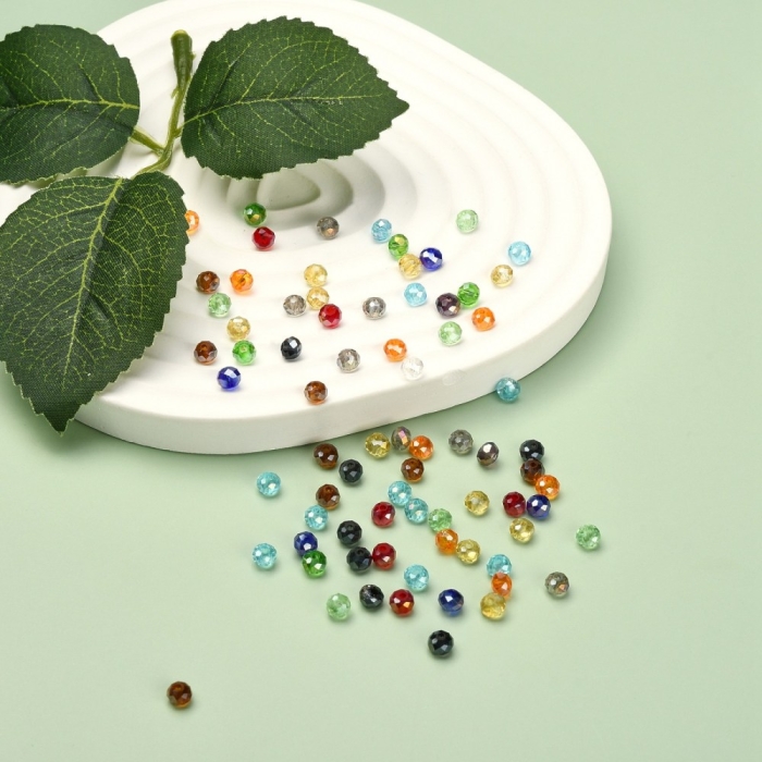 Бусины Гальваника Стекло АВ-Цвет, Граненые, Рондель, Микс, 4х3мм, Отв-тие: 1мм, около 200шт/упаковка, (УТ100009573)
