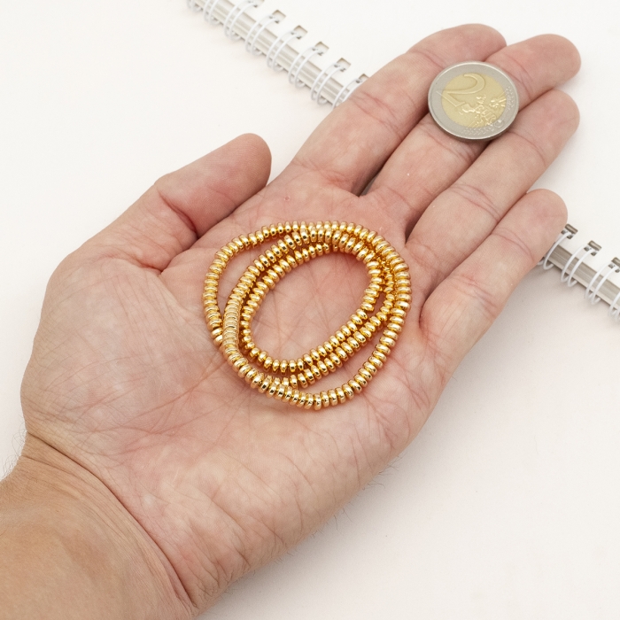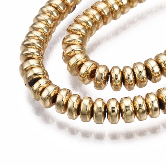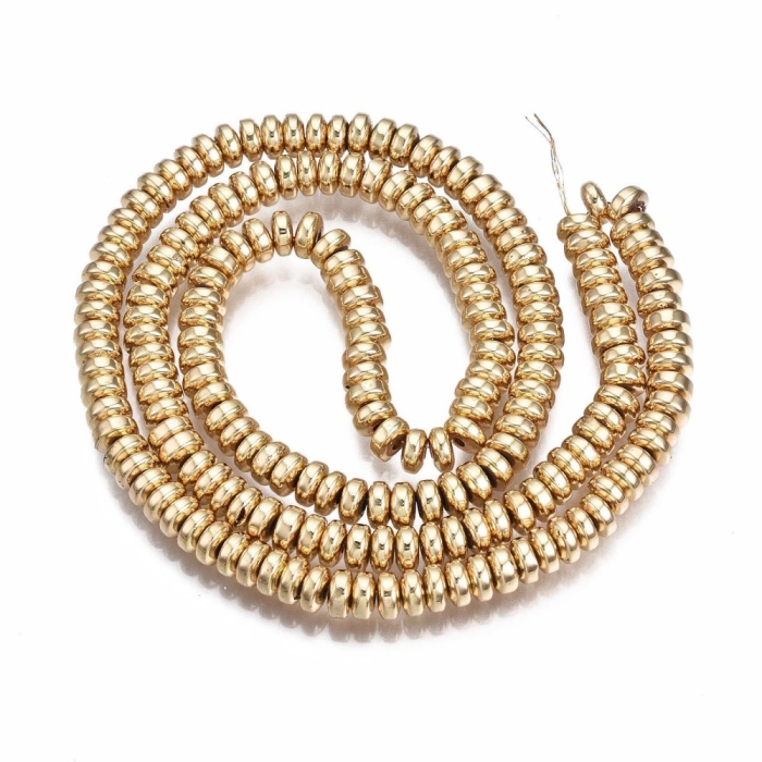 Бусины Синтетический Гематит Рондель, Светлое Золото, 4х2мм, Отверстие 1мм, около 175шт/38см/нить, (УТ100011307)