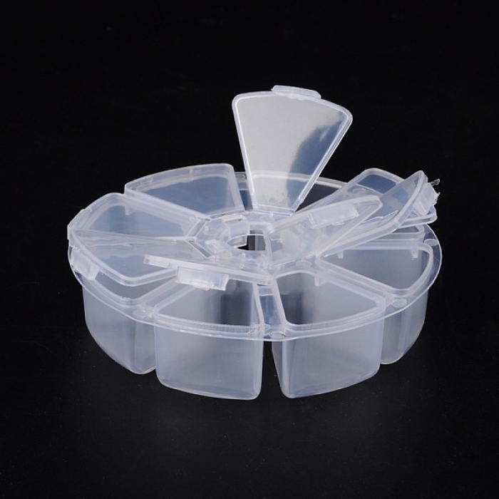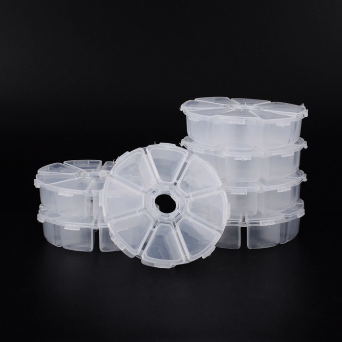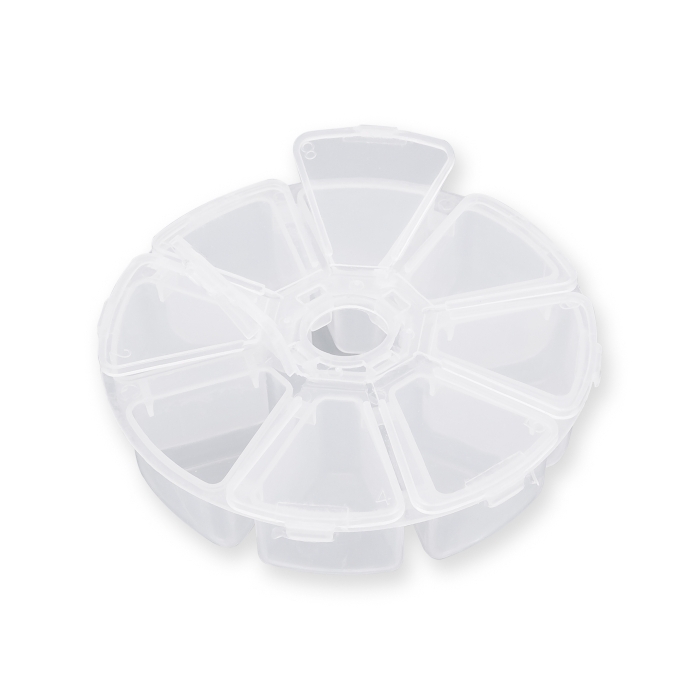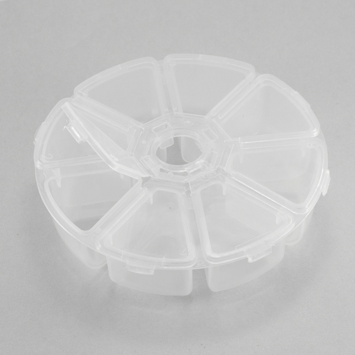 Контейнер для Бисера и Бусин, Пластик, Круглый, на 8 отсеков, Цвет: Бесцветный, Размер: 10.5x10.5x2.8см, (УТ100011663)