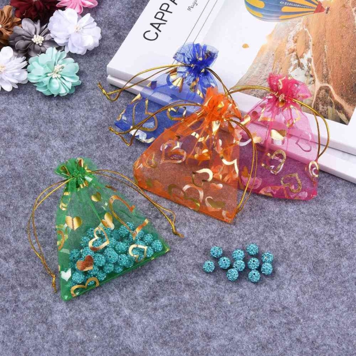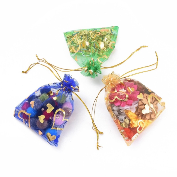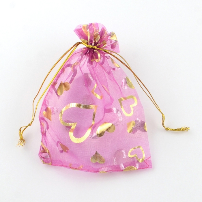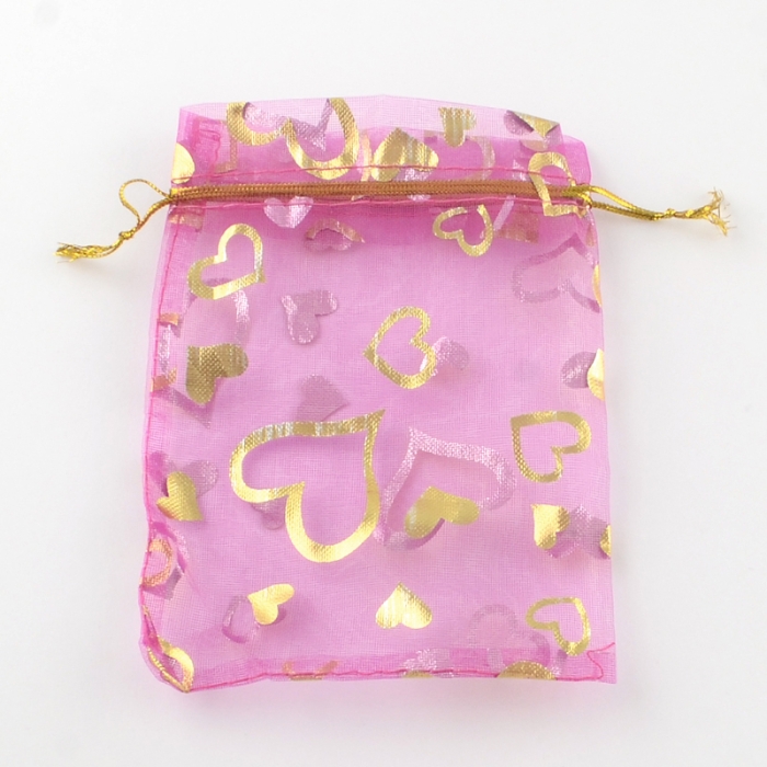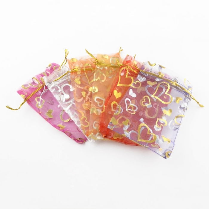 Подарочные Мешочки из Органзы с Рисунком Сердце, Прозрачный, Mикс, 12x10см, (УТ100011551)