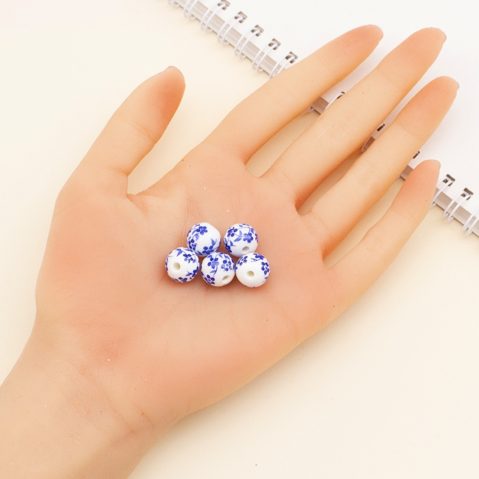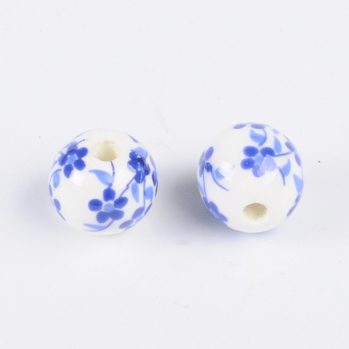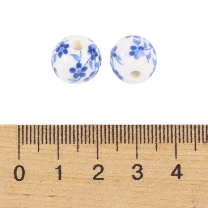 Бусины Фарфоровые Ручной Работы с Принтом Круглые, Голубые, 12мм, Отверстие 3мм, (БА000001106)