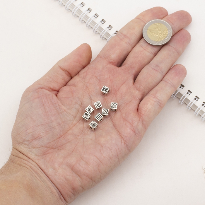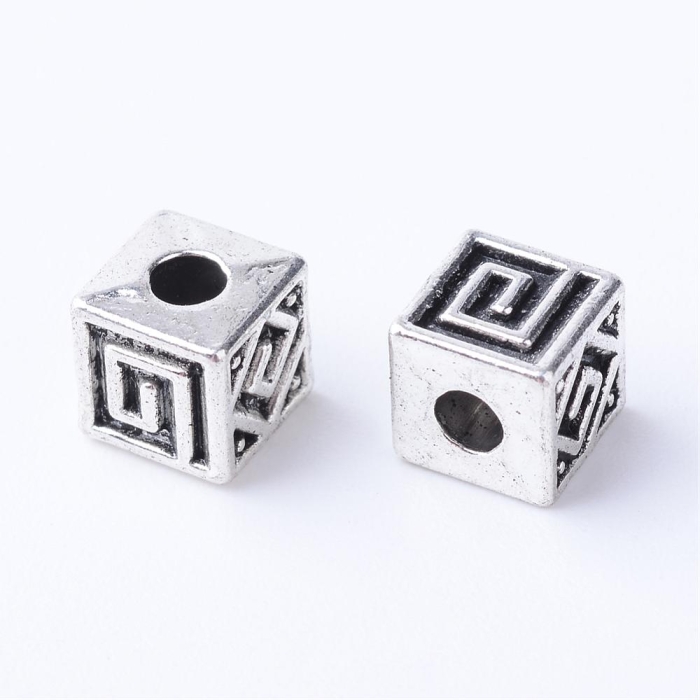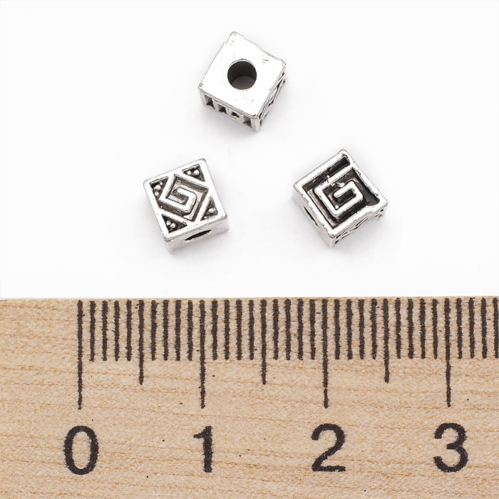 Бусины-Разделители Бижутерный Сплав, Кубик, Цвет: Античное Серебро, Размер: 5.5х5.5х5.5мм, Отверстие 2мм, (УТ100012761)